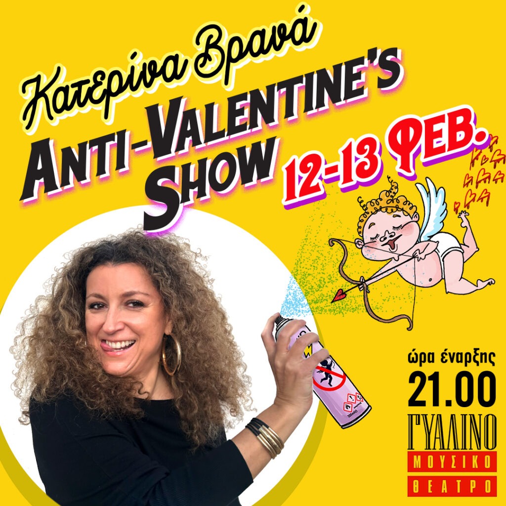 Αν είστε σε σχέση ή και όχι. Αν είστε φρεσκοχωρισμένοι-ες-α. Αν αγαπάτε ή αν είστε ελεύθεροι κι ωραίες, το “Anti-Valentine’s Show” της Κατερίνας Βρανά θα σας καλύψει ΟΛΟΥΣ. ΟΛΕΣ. ΟΛΑ.