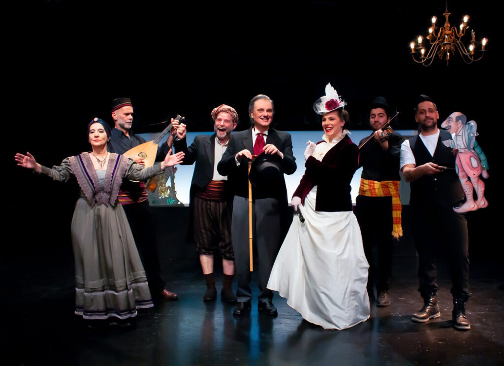 Μια ξεκαρδιστική, διαδραστική παράσταση για όλη την οικογένεια με μειωμένο εισιτήριο για τα παιδιά. Mε παραδοσιακά τραγούδια της εποχής και τη συμμετοχή ζωντανής μουσικής επί σκηνής καθώς και του καραγκιοζοπαίχτη Κώστα Σπυρόπουλου, γιού και άξιου συνεχιστή του «εθνικού καραγκιοζοπαίχτη» Θανάση Σπυρόπουλου.