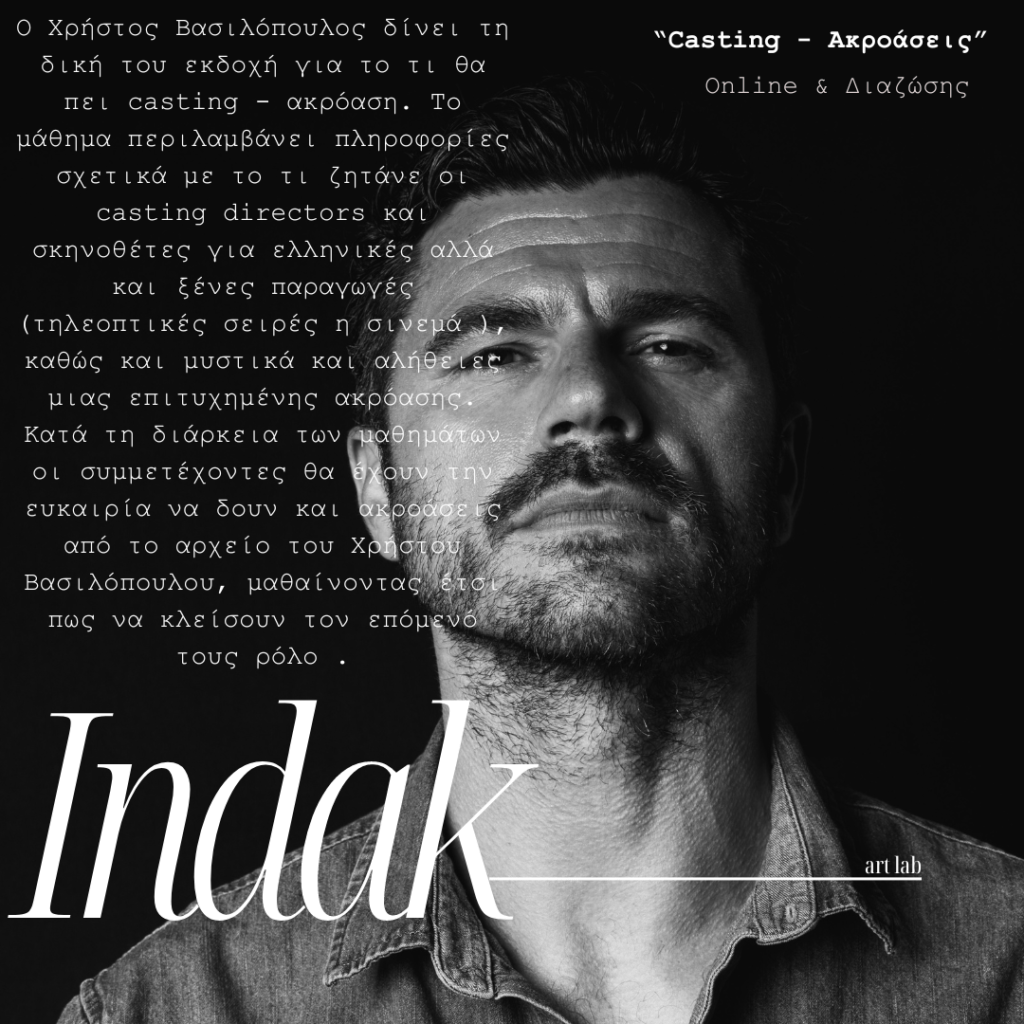 Το INDAK art lab, πάντα καινοτόμο και ανοιχτό σε ωραίες και ουσιαστικές συνεργασίες, υποδέχεται στον χώρο του τον Χρήστο Βασιλόπουλο. Ο γνωστός ηθοποιός έρχεται στο κέντρο παραστατικών τεχνών στο Παγκράτι, για ένα σεμινάριο που θα πάρει μεγάλο βάρος από τους ώμους πολλών καλλιτεχνών.