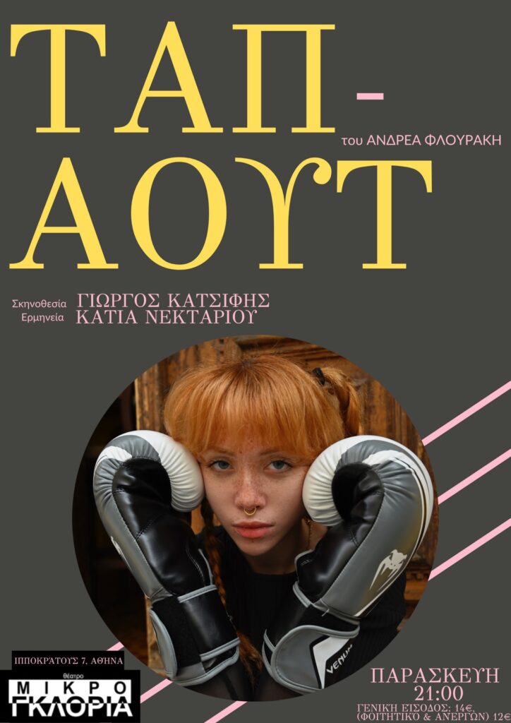 «Ο Ανδρέας Φλουράκης αποτυπώνει στο  “Ταπ Άουτ” την κοινωνία που ζούμε με τρόπο απλό και ταυτόχρονα τόσο δεξιοτεχνικό που είναι πρόκληση να αναμετρηθείς μαζί του. Ο αγώνας στο ρινγκ δεν είναι άλλο από τον καθημερινό αγώνα που δίνουμε όλοι, αλλά και τον εσωτερικό αγώνα που δίνει ο κάθε άνθρωπος, όταν κλείνει την πόρτα στο σπίτι του. Το μεγαλύτερο ενδιαφέρον για εμένα, ωστόσο, είναι ότι σ’ αυτόν τον μονόλογο μπορούν όλοι να ταυτιστούν με τον χαρακτήρα. Ασχέτως εθνικότητας, κοινωνικής θέσης, εργασίας, φύλλου κ.ο.κ. Το κείμενο φτάνει στην ουσία: ότι κάτω απ’ τη μάσκα αγωνιζόμαστε, ιδρώνουμε, νιώθουμε, πονάμε όλοι με τον ίδιο τρόπο. Όλοι για τον ίδιο σκοπό. Είτε ατομικά, είτε συλλογικά. Ίσως αυτά που μας ενώνουν να είναι περισσότερα από αυτά που μας χωρίζουν τελικά.»