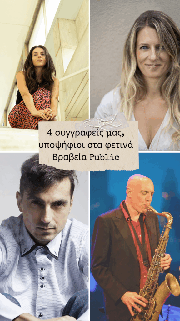 Τέσσερις συγγραφείς μας είναι υποψήφιοι σε ισάριθμες κατηγορίες στα φετινά Public Book Awards. Δείτε ποιοι είναι κι αφιερώστε λίγο από τον χρόνο σας για να τους δώσετε μια θέση στη δεκάδα.